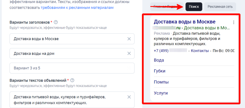 Теперь давайте пошагово настроим рекламу с помощью «Мастера кампаний» для услуг по доставке воды в Москве. У нас на это ушло примерно 10 минут.