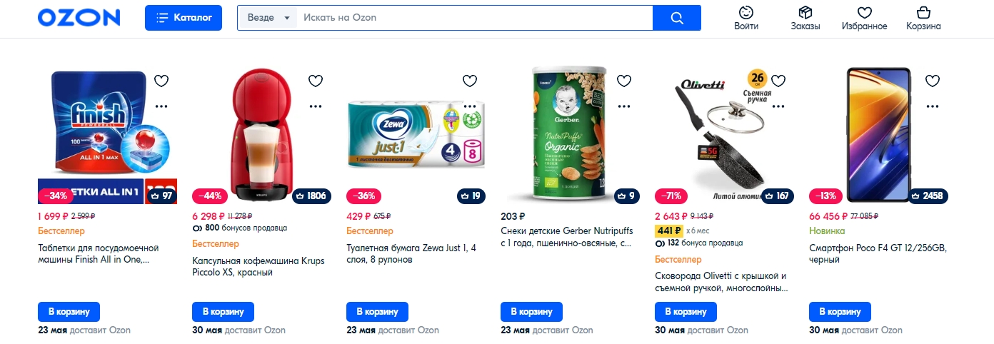 Частично функцию продвижения берут на себя сами площадки, но внутри крупных онлайн-гипермаркетов приходится конкурировать с другими продавцами. Важно повышать рейтинг магазина, основанный главным образом на оценках и отзывах пользователей, использовать разные рекламные метки (“Хит”, “Бестселлер”, “Новинка”) и другие полезные встроенные функции.