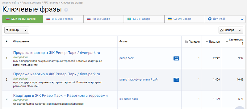 Анализ эффективности контекстной рекламы не менее важен. В большинстве случаев, можно пользоваться все теми же сервисами, что и в мониторинге конкурентов. Хотя, при неглубоком анализе, достаточно будет даже данных из Яндекс Метрики. Однако, есть некоторые моменты, которые не отследить таким способом.