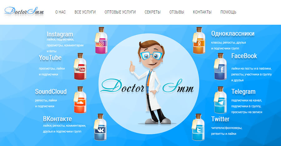 DoctorSmm — работает с несколькими соцсетями, примечателен тем, что предлагает огромное количество пакетов услуг в зависимости от качества накрутки.
