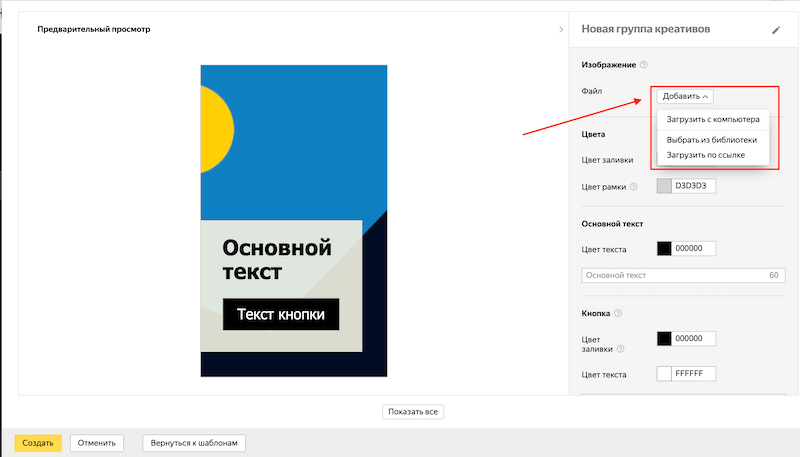 Работа в конструкторе креативов