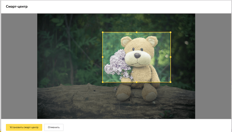 Шаг 3. Установите смарт-центр — главную по смыслу область, которая не должна быть потеряна при адаптации объявления под рекламный блок. Изменить смарт-центр можно в блоке Изображение, нажав кнопку «Изменить».