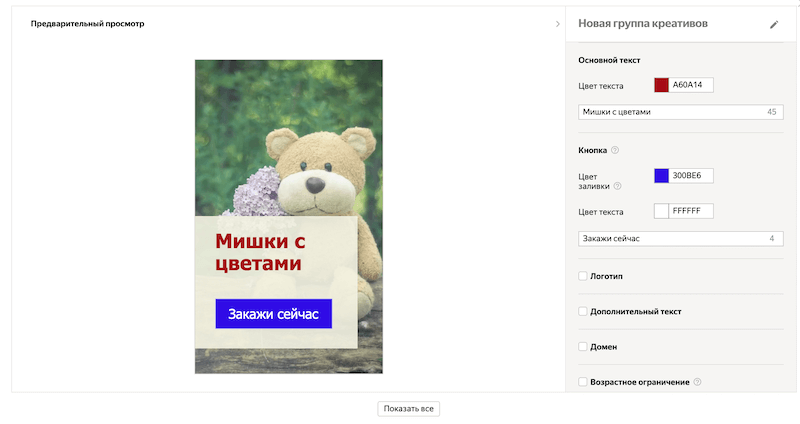 Чтобы сделать шаблон адаптивного креатива, следуйте инструкции.