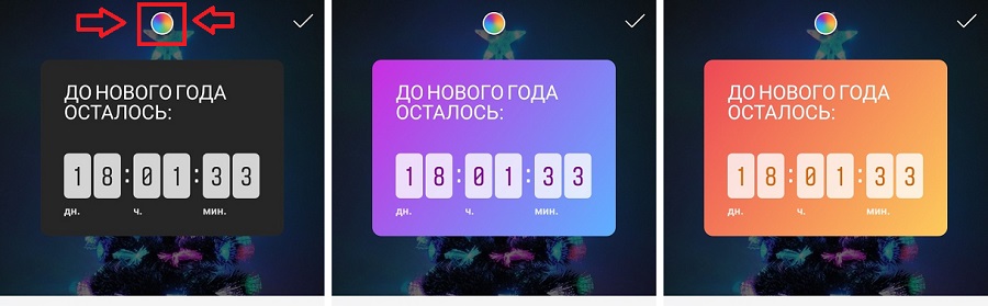 Цвет. Нажимая на цветной круглешок над обратным отсчётом, вы можете менять его цвет.