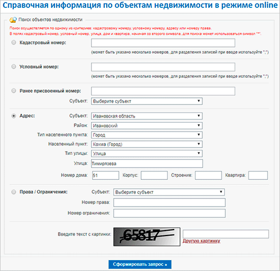 Шаг 2. Заполните любые доступные вам данные о проверяемом объекте недвижимости.