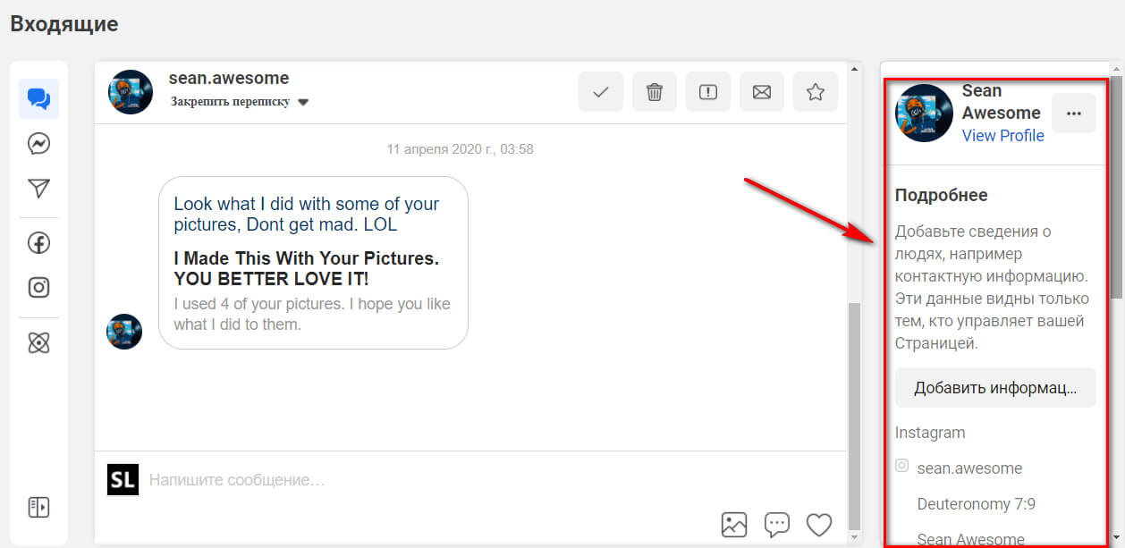 Это, своего рода, омниканальный мессенджер. В общей ленте отображаются все переписки из FB Messenger, Instagram Direct, комментарии и отзывы из Facebook и Instagram. При желании можно отфильтровать все сообщения по конкретным каналам связи — слева от окна мессенджера отображаются их значки.