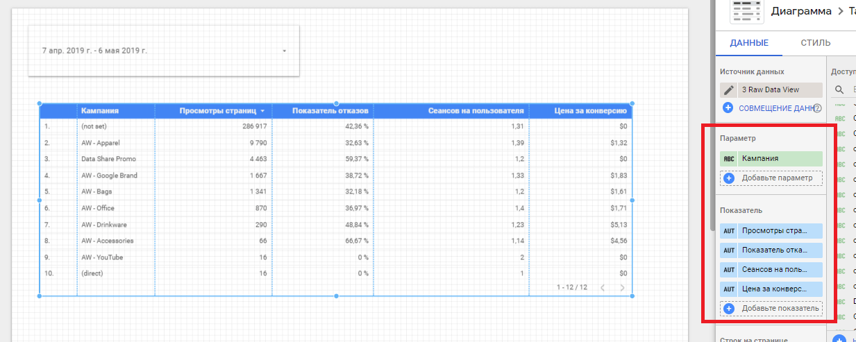 Давайте рассмотрим все это на примере построения отчета по РК в Google Ads, где нужно отразить: