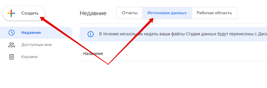 1. Переходим во вкладку «Источники данных» и кликаем по по кнопке «Создать».