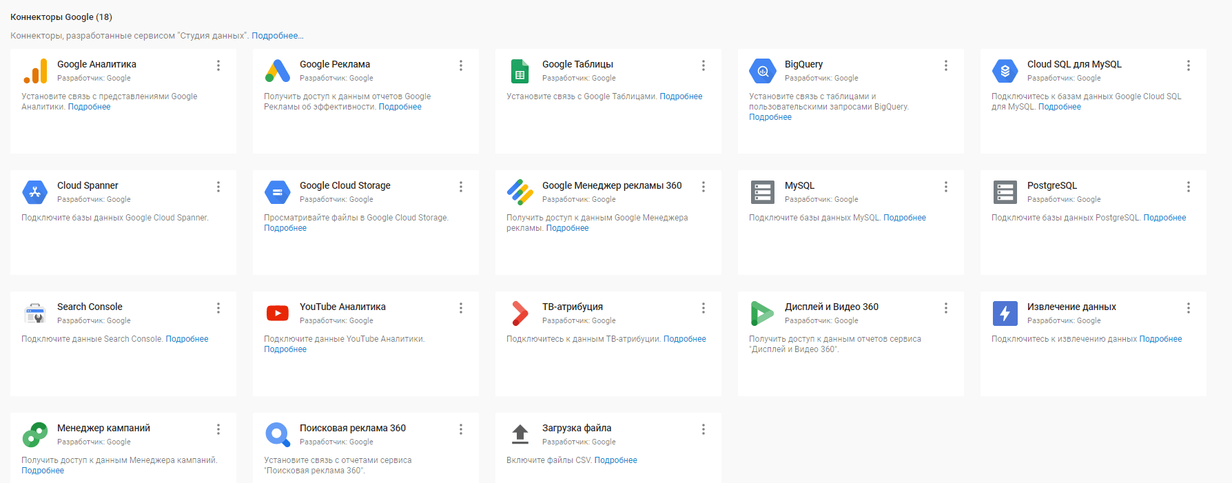 Google Data Studio — это бесплатный сервис для веб-аналитиков и SEO-специалистов. Его функционал заключается в создании отчетов на основе различных источников – Google Ads, Google Analytics и других. Их количество превышает 170 штук.