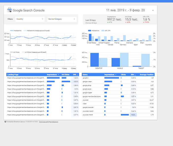- Search Console – наиболее популярный из всех. Сравнивает показатели в выдаче Google за сегодня и в течение предыдущих 30 дней (сайт должен быть добавлен в Search Console).
