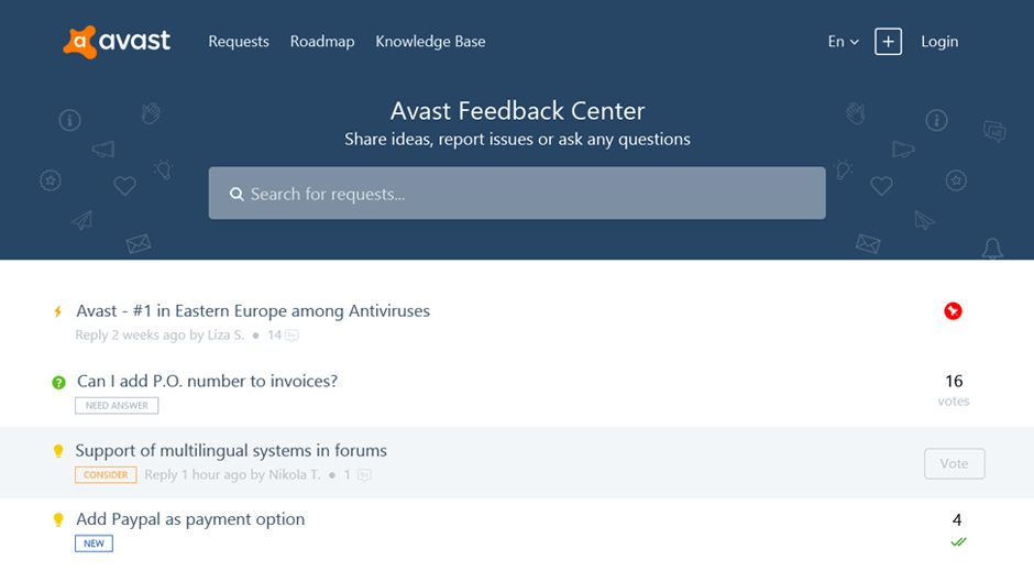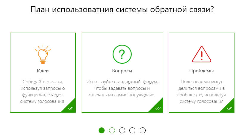 3. Фидбэк система. Система для сбора и обработки обратной связи, которая позволяет создать сообщество для общения представителей компании со своими клиентами, а также создать внутреннюю систему обсуждения. Может быть использована для различных сценариев, в том числе для сбора идей, отзывов, вопросов, репорта багов и сбора запросов на разработку.