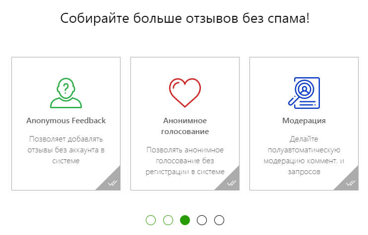 Указываем основные пункты настроек: возможность оставлять анонимные фидбеки, анонимное голосование, полуавтоматическая модерация. Ставим галочки напротив необходимых функций.