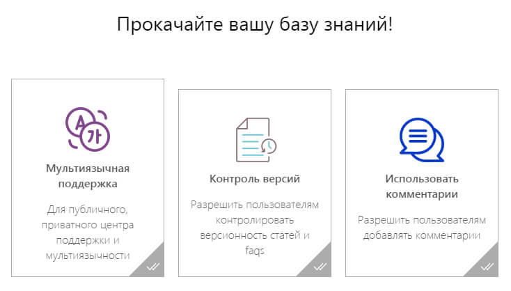 Есть возможность сразу добавить дополнительный функционал к базе знаний — мультиязычную поддержку, контроль версий статей, разрешение пользователям добавлять комментарии.