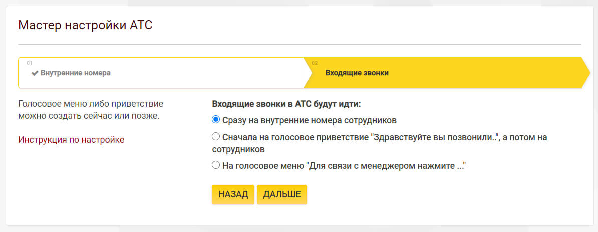 Более сложные настройки, например, настройка внутренних номеров для сотрудников находятся в разделе «Моя АТС».