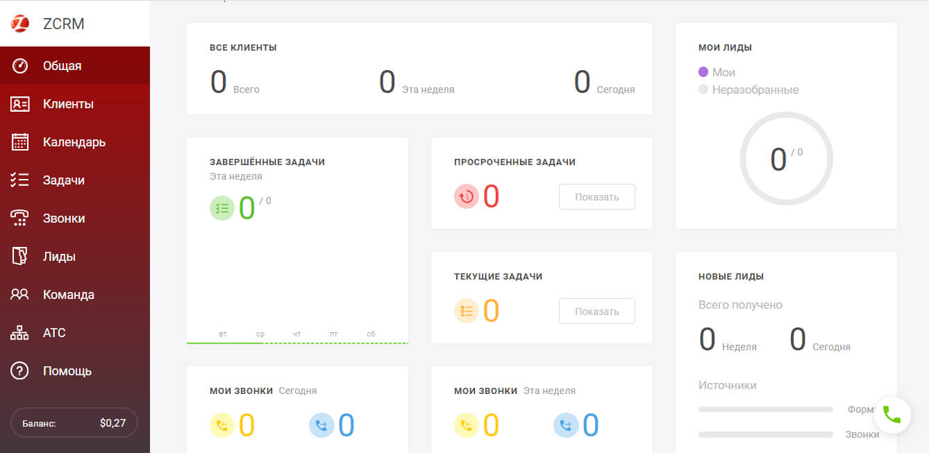 CRM показывает данные по клиентам, лиды, задачи и звонки. Если недостаточно функционала ZCRM, можно подключить АТС к Битрикс24, AmoCRM, retailCRM и другим популярным системам.