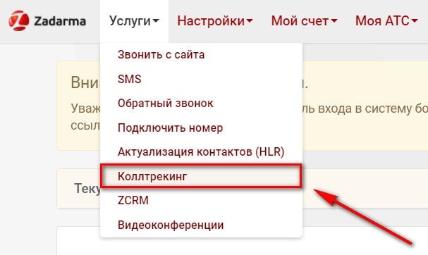 Коллтрекинг добавляется и настраивается в разделе «Услуги» — «Коллтрекинг».