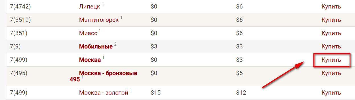 Чтобы подключить номер, жмем на кнопку «Купить».