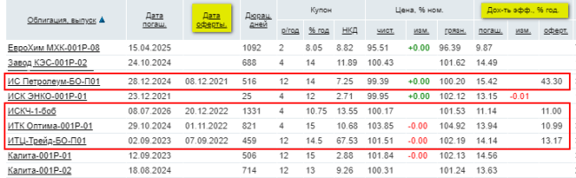 С датой все понятно – она показывает, когда предусмотрена процедура. Для обычных бумаг эффективная доходность рассчитывается к дате погашения, для бумаг с офертой – к дате оферты.