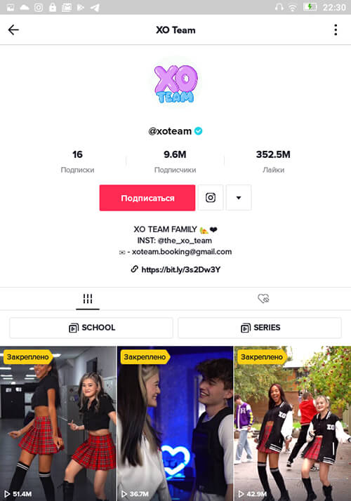 Название коллектива и контакты для сотрудничества. Пример — описание @xoteam.