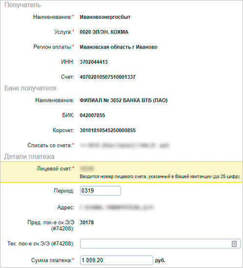 Способ 1. Самый простой способ – это платежка, которую вы получаете каждый месяц. На ней не только номер вашего счета, но и вся необходимая информация об энергоснабжающей организации (ИНН, БИК и другое).