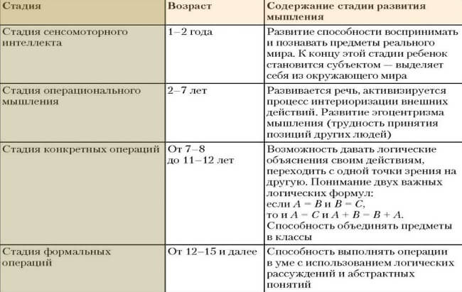 Стадии развития мышления можно посмотреть в таблице.