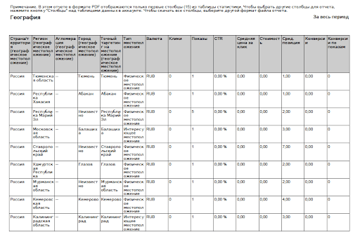 Благодаря такому отчёту, вы сможете уточнить геотаргетинг рекламных объявлений. Исключайте из списка регионы, жителям которых нецелесообразно показывать промо-материалы, например, если в них пока нет ваших филиалов или не отлажена доставка товаров.
