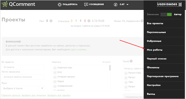 Вверху можно поменять язык на украинский или английский. Если хотите зарабатывать больше, выбирайте их. Комментарии на иностранных языках стоят дороже – от 15 рублей.