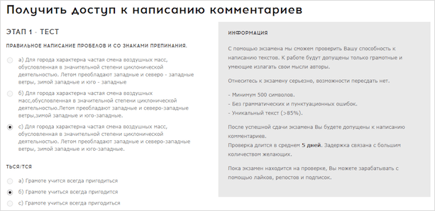 Сложно ли пройти тест? Нет. Пишите без ошибок по теме и вам откроют доступ к комментированию, которое дороже лайков и репостов. Это займет 10 – 15 минут.