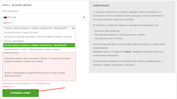 После проверки содержания и грамматики смело нажимайте “Отправить ответ”. Ждите результатов.