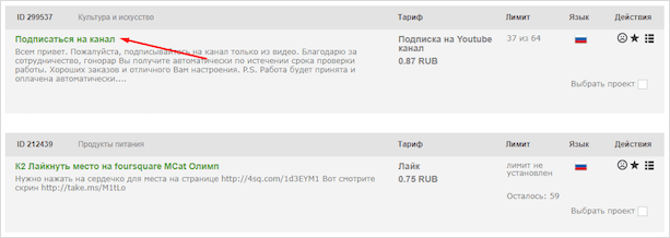 Среди доступных нам проектов мы выбираем легкий и подходящий. Наш ожидает подписка на канал очередного ютубера.