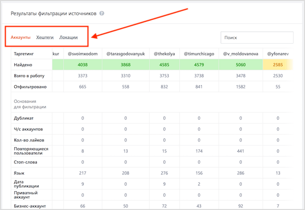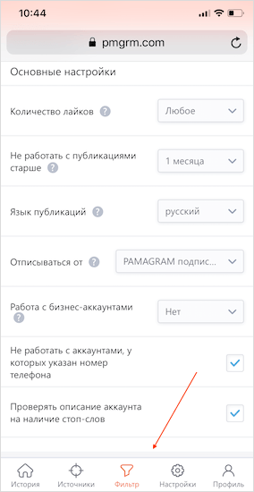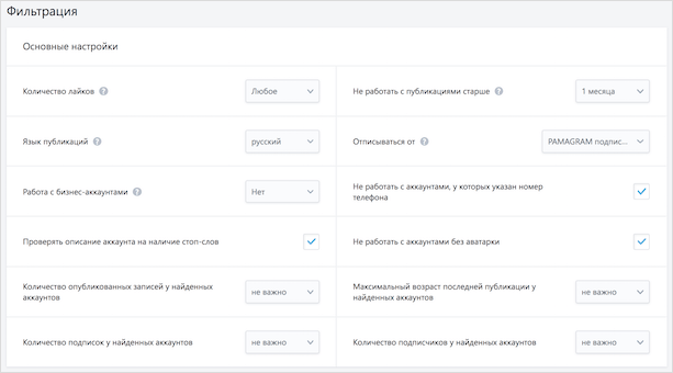 Данная настройка помогает отфильтровать источники, по которым совершаются активности. Большинство параметров направлено на то, чтобы программа не работала с мертвыми пользователями, которые не заходят в Инстаграм.