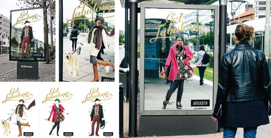 Arkaden. Наглядная витрина одежды от шведского дома моды с возможностью «примерки». Изображения нарядов нанесены на зеркальную поверхность, покупателю нужно лишь принять подходящую позу.