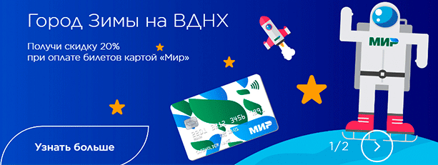 А также скидка в 20 % от покупки билетов в Город Зимы на ВДНХ.