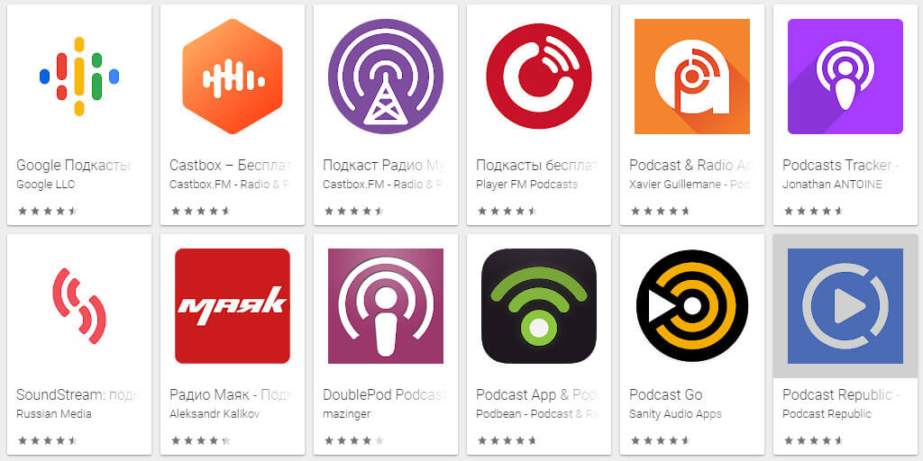 Как и где слушать подкасты? Для гаджетов на Андроид есть приложения Google подкасты, Player FM Podcasts, Podcast Go, SoundStream, Podcast Republic, Stitcher.