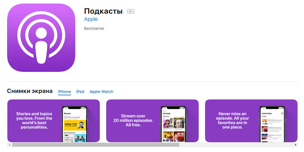 Чтобы послушать подкасты в айфоне, откройте встроенное приложение Подкасты.