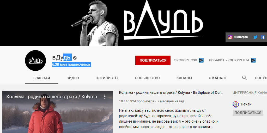 Это авторское шоу Юрия Дудя – российского журналиста, телеведущего и видеоблогера. Видеоподкасты проходят в формате интервью с политиками, музыкантами, деятелями искусства и кино. Кроме интервью Юрий начал записывать документальные фильмы. Посмотреть можно на Ютуб канале вДудь. В месяц выходит около 3 выпусков. Аудиоверсии есть ВКонтакте и в приложении The Podcast App.