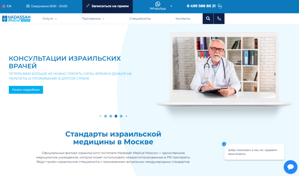 К цветам тоже стоит подходить внимательно. Сколько бы ни спорили о психологии цвета, ассоциации никто не отменял. Например, красный акцентирует внимание и ассоциируется с силой и энергией. Наиболее спокойными цветами, воплощающими надежность и безопасность, являются синий и зеленый. Неслучайно именно в этих цветах оформляют сайты клиник.