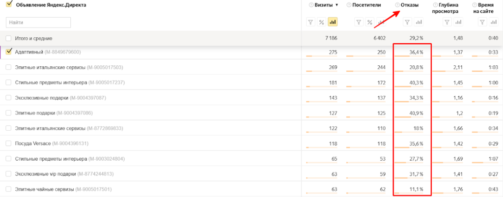 Отказы – это параметр для визитов пользователей на сайт, говорящий о том, сколько времени они провели на странице и совершили ли какие-нибудь действия на ней. Процент отказов косвенно сообщает нам о том, насколько заинтересованная аудитория приходит на сайт и насколько он ей нравится.