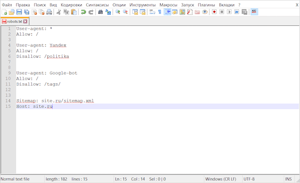 Создание robots.txt