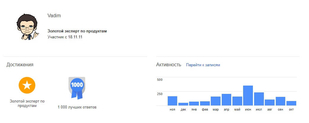 Кроме того, если другие пользователи будут помечать ваши ответы, как злоупотребление, это значительно замедлит продвижение к следующему уровню. Вот показатели активности пользователя с уровнем золотой эксперт по продуктам.