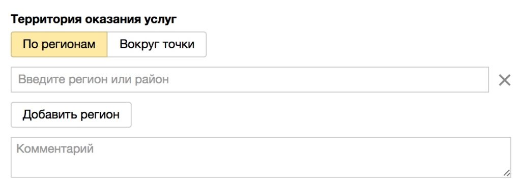 От компании требуется только указать область (район, территорию) на карте, где оказываются услуги.