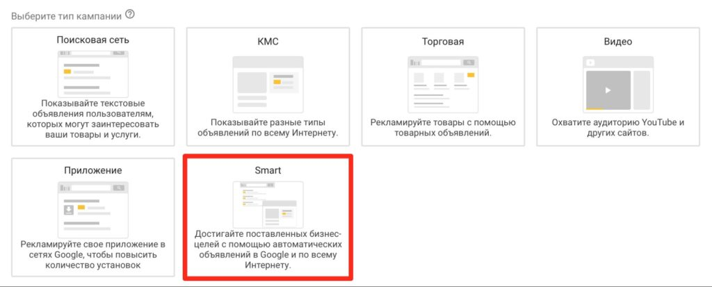 После подтверждения данных компании можно приступать к размещению рекламных объявлений при помощи сервиса Google Ads. Лучше воспользоваться типом рекламной кампании Smart — «умным» продвижением.