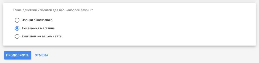 Система предложит оптимизировать показ рекламы под конкретные цели: звонки, визиты в магазин или действия на сайте.