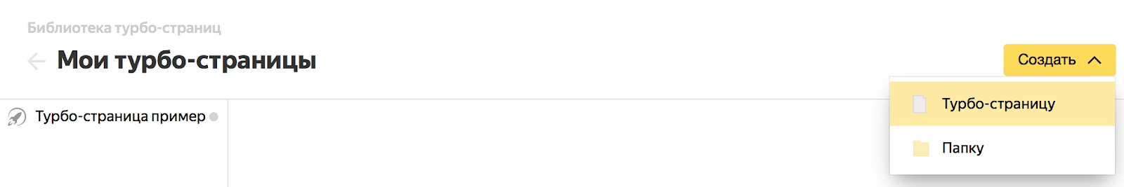 Нажмите кнопку «Создать», выберите «Турбо-страница», после чего приступайте к созданию вашего Landing Page.