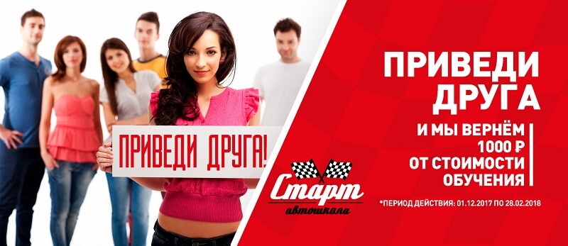 Адаптируйте условия промо-акции под собственные цели и специфику ниши. К примеру, у автошколы «Старт» три месяца действовала рекламная акция «Приведи друга». Каждому участнику на счёт возвращалась 1000 рублей от стоимости обучения. Это хороший ход – демонстрировать не абстрактный размер скидки, а конкретную сумму, которую сэкономит клиент.