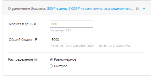 Оно нужно, чтобы избежать слишком быстрого расхода средств. При равномерном распределении объявления показываются в течение всего периода показа (он при этом должен быть задан в настройках). При быстром распределении они могут открутиться за короткое время. Часто это нужно для запуска срочных маркетинговых активностей, таких как скидки, акции или конкурсы.