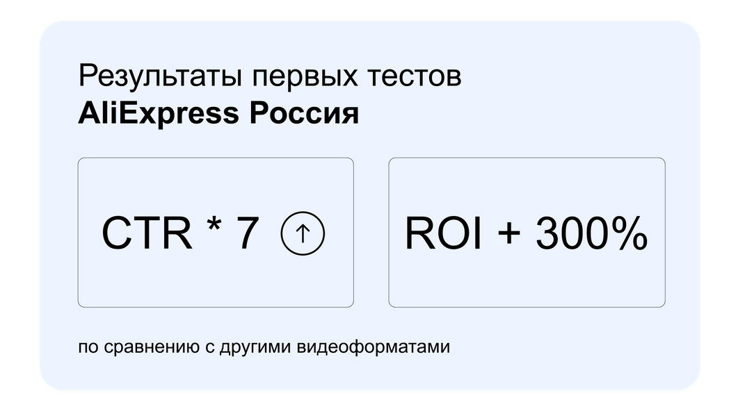 Одной из первых формат протестировала компания AliExpress Россия. По сравнению с другими видеоформатами, Shoppable Ads показал семикратный рост CTR и трехкратный рост ROI.
