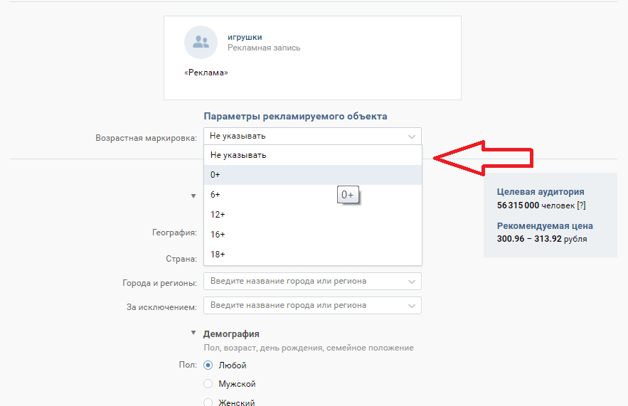 Широкие возможности для формирования целевой аудитории позволяют настроить пол, возрастные ограничения, выбрать семейное положение, дату рождения, сферу интересов. Кроме того, настройки позволяют демонстрировать рекламу только подписчикам определенных пабликов.
