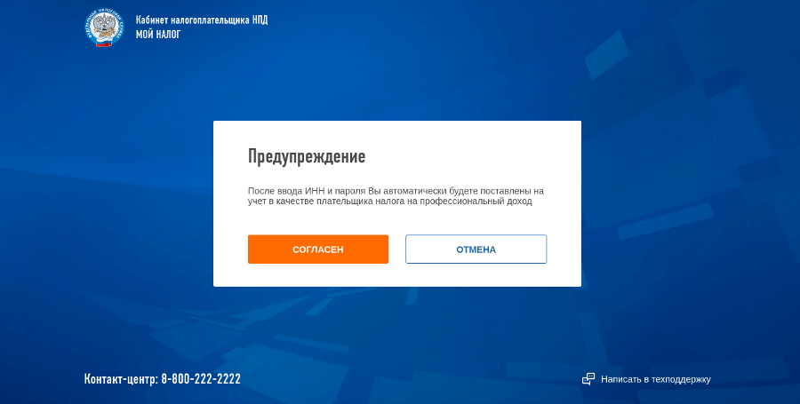 Шаг 3. После ввода логина и ИНН от личного кабинета налогоплательщика режим новый налоговый режим будет активирован.