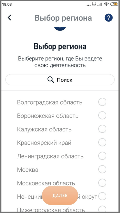 Шаг 3. Выберите регион, где планируете вести деятельность. Сейчас самозанятыми могут стать жители 23 регионов. В июле 2020 года программа будет действовать по всей России.